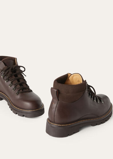 Diese mittelhohen Ankle-Boots vereinen City-Style mit gebirgstauglicher Performance. Das Modell aus ultrafeinem, vollnarbigem Kalbleder wird am Einstieg von einem gepolsterten Velourslederrand abgerundet und ist regenfest ausgerüstet. Das flauschige Shearlingfutter verspricht außergewöhnliche Wärme, während die Gummisohle, die Zwischensohle aus Mikro-EVA und die Naht der Lederleiste im Norwegerstil für mehr Grip und Halt sorgen.