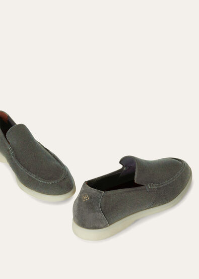 Loro Piana loafers made from knit Wish® wool. Prior to being joined to their rubber soles, the uppers are crafted on a loom — just like a jumper. They are defined by a water-repellent Rain System® treatment and sophisticated suede details.