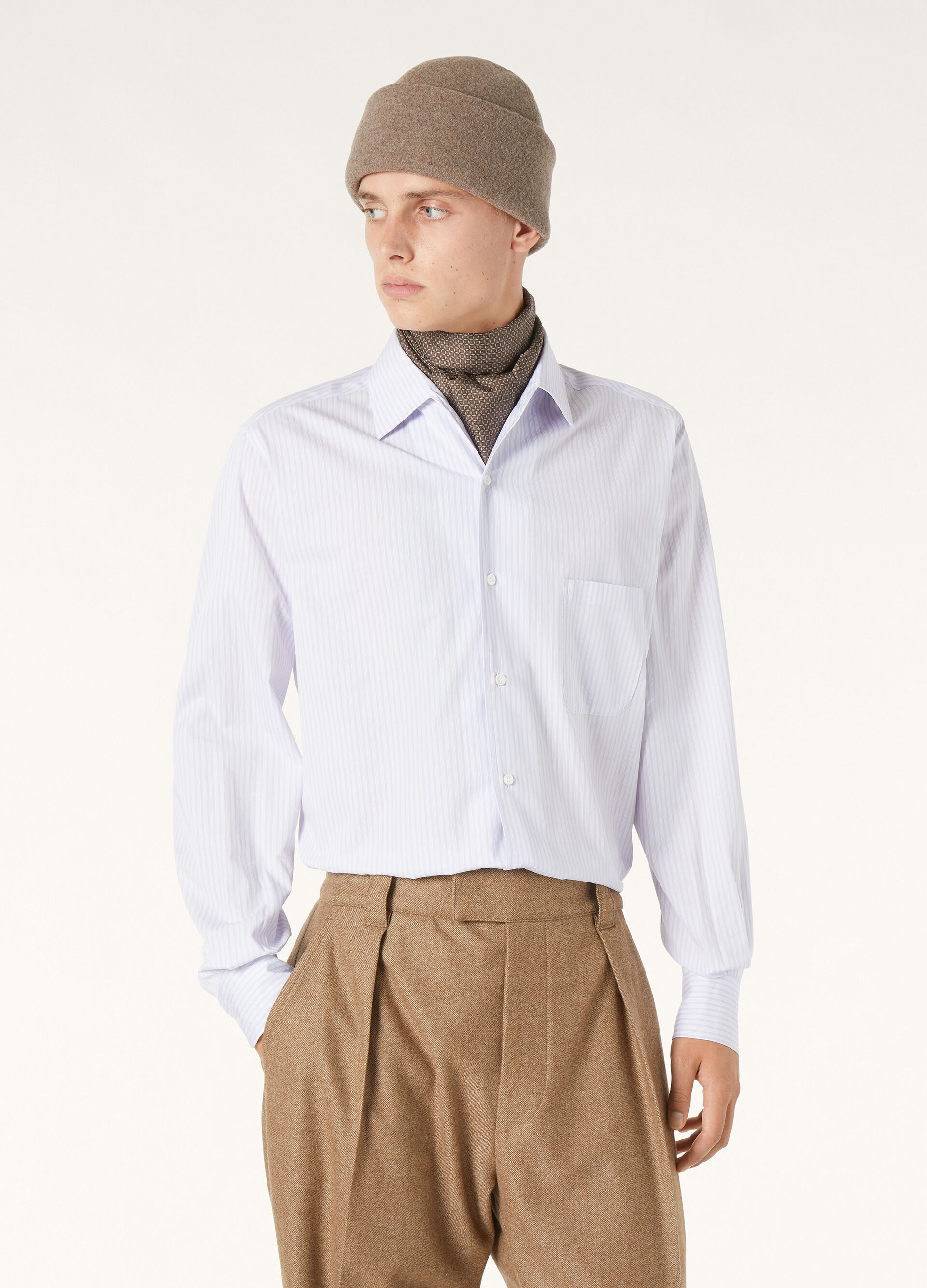 The André shirt elegantly bridges the lingering chill of winter with the first whispers of spring, dressing you in comfort as the seasons subtly shift. The iconic 1950s-inspired collar of this cotton striped shirt speaks of timeless informality with impeccable pedigree. The precise details and clean lines create an everyday luxury that pairs naturally with pressed trousers and weekend denim.
